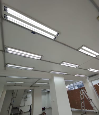 ventiladores de teto, lâmpadas, luminárias, quadros, etc